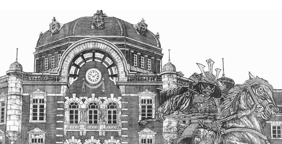 はじめに下絵を描きトレーシングペーパー等に下絵を移したのち左右を反転し、カーボン紙を使って反転した図柄を版木に転写します。図柄に沿って彫刻刀で彫っていきます。