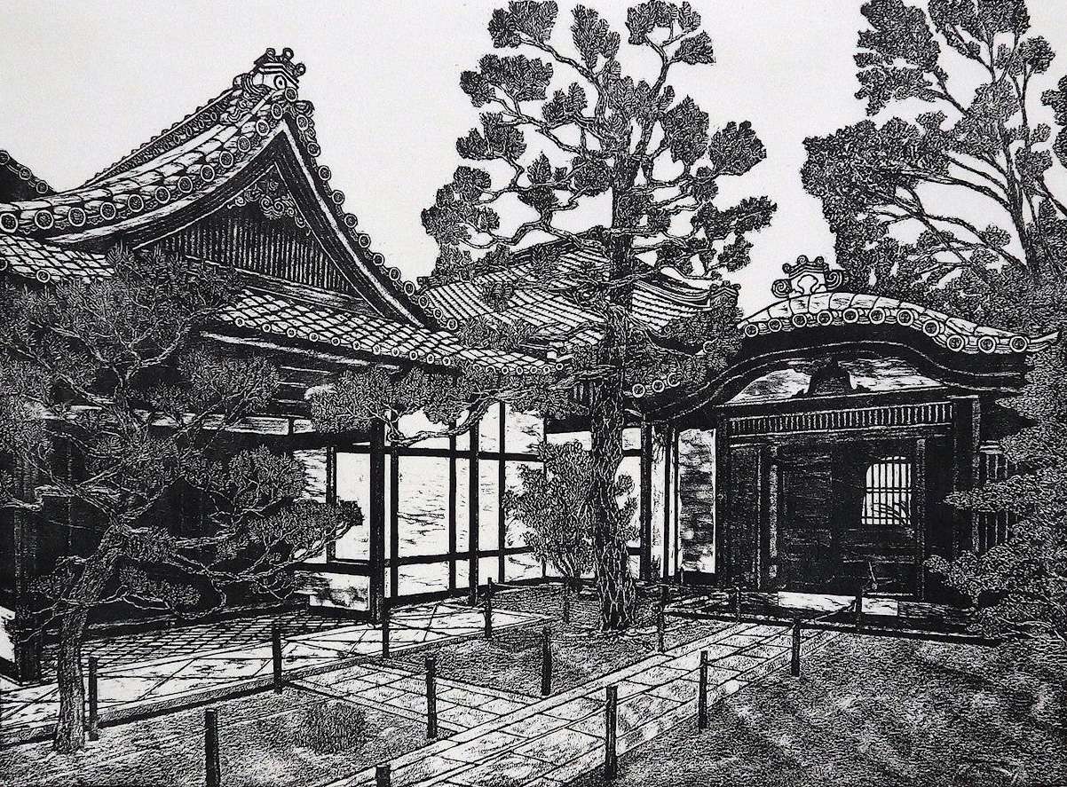 2019年10月11日に京都妙心寺の塔頭 大雄院を訪問し制作した版画を奉納してまいりました。当日はご住職による奉納の儀がご本堂の須弥壇にて読経とお焼香で厳かに執り行われました。奉納した版画は大雄院の参道から本堂への入り口の景観をとらえたものです。奉納した版画は本堂の中に展示されています。